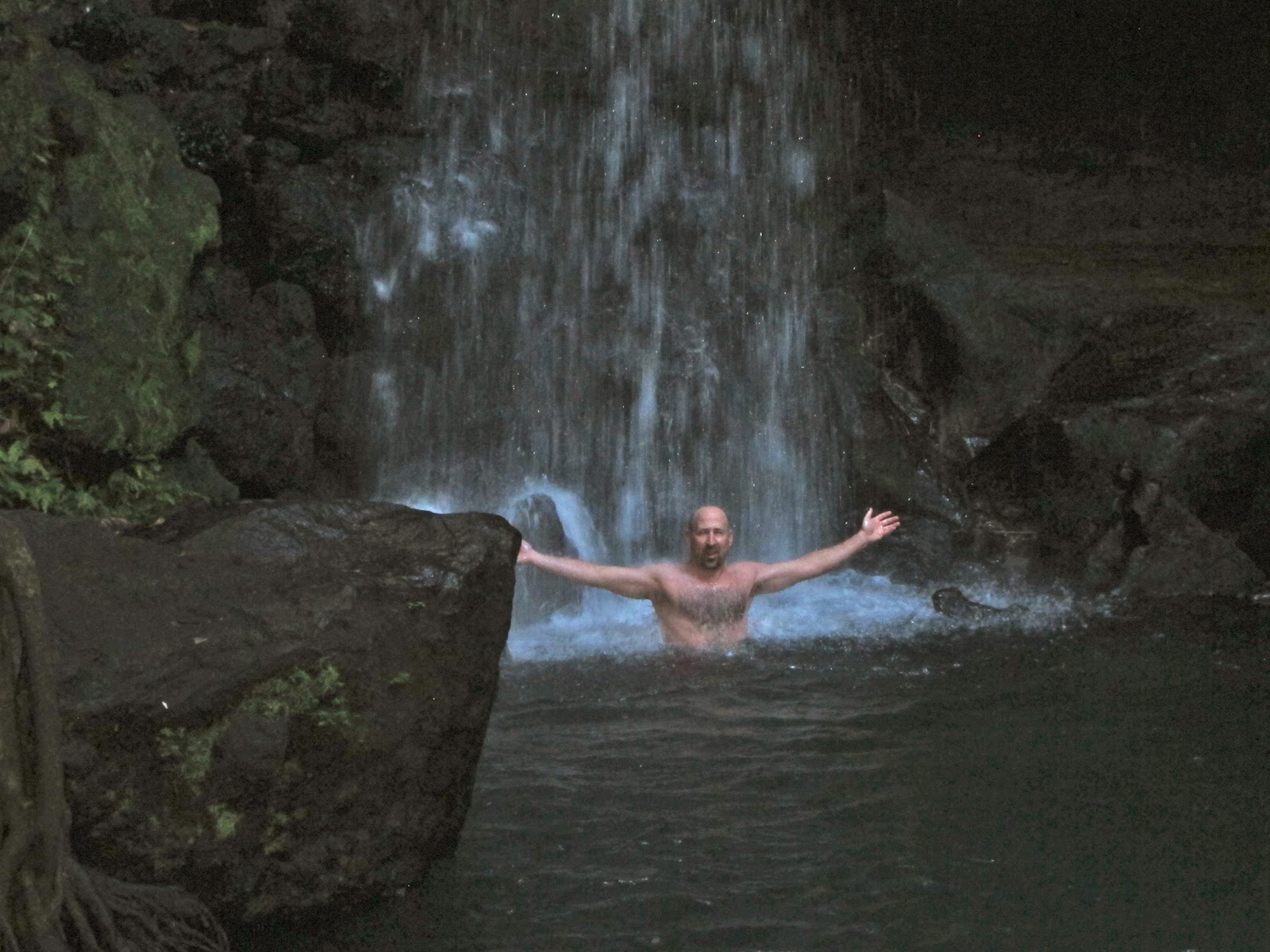 He was even more surprised when he jumped off a rock and landed in a deep pool of water - first time swimming!